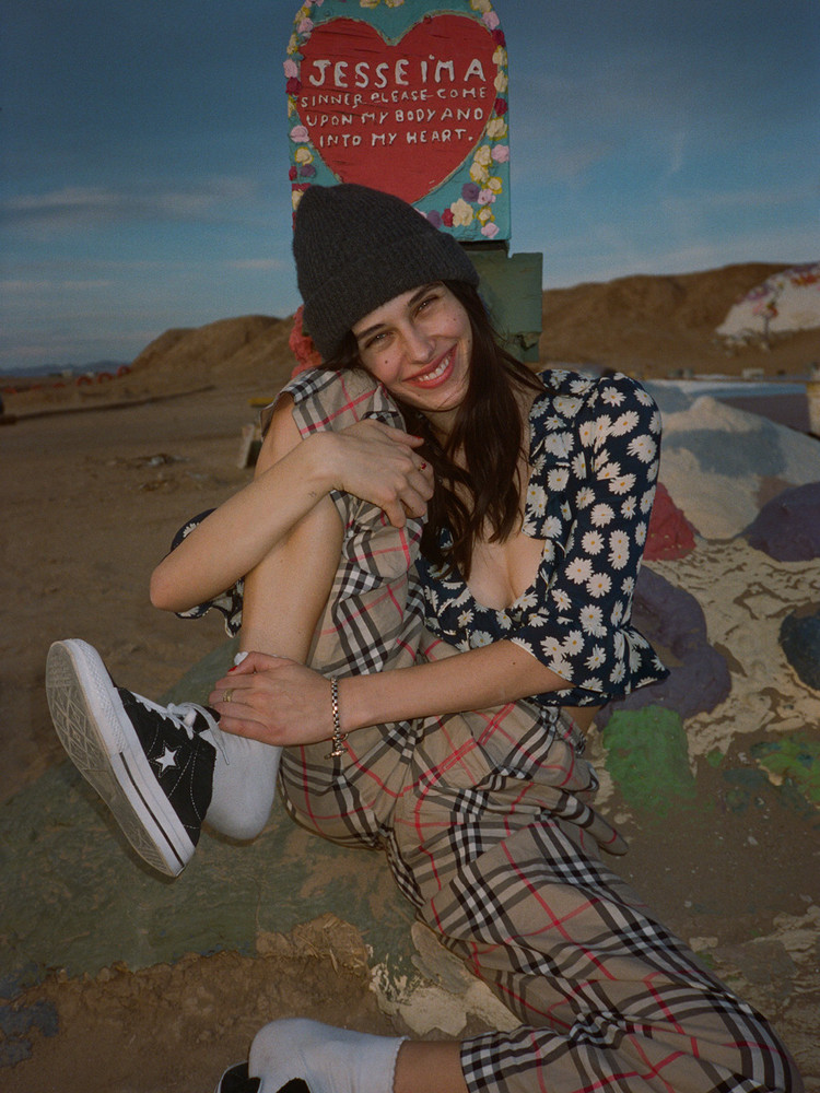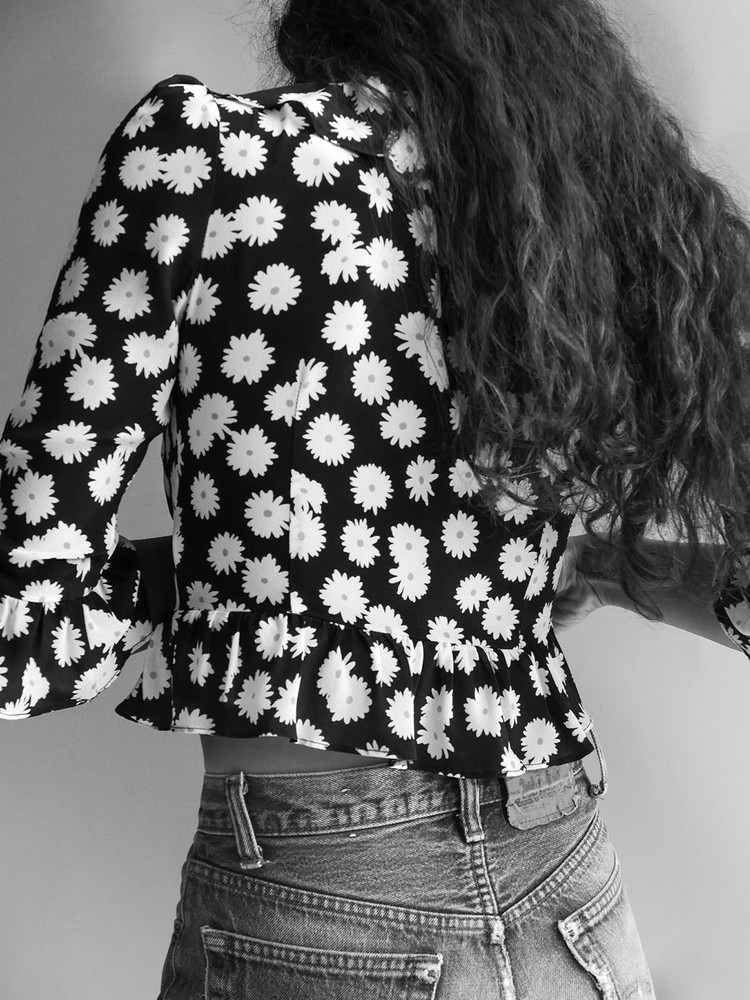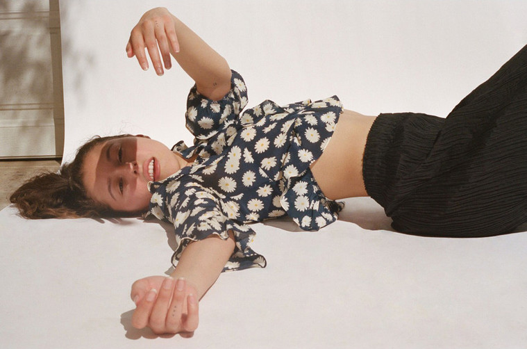 We all have our things. Our thing is Cheryl and her thing is this top. She found it in a pile of samples we were making and it became her favourite because it can be worn open as a jacket or closed as a shirt, fitted or boxy. So we made it and named it 'The Cher'... Then shot them on the way to a party in her Volvo.