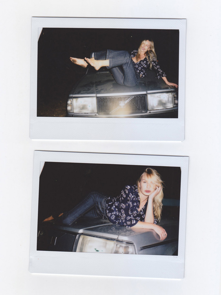 We all have our things. Our thing is Cheryl and her thing is this top. She found it in a pile of samples we were making and it became her favourite because it can be worn open as a jacket or closed as a shirt, fitted or boxy. So we made it and named it 'The Cher'... Then shot them on the way to a party in her Volvo.